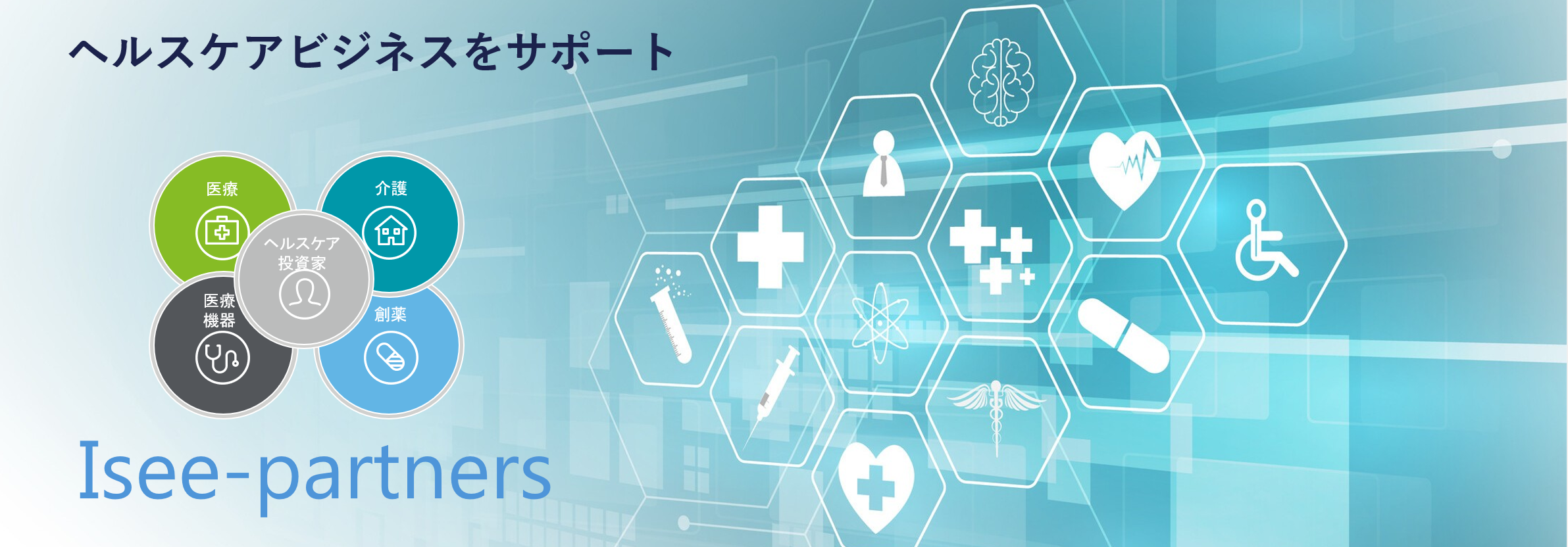 アイシーパートナーズ合同会社は、医療・介護のオペレーターと投資家をつなぐ会社です。 ヘルスケアセクター向け投資事業のサポート業務を行います。 M&Aヘルスケア企業買収におけるファイナンシャルアドバイザリー業務。 不動産投資 ヘルスケア不動産取得に関わるアドバイザリー業務。 アドバイザー業務 ヘルスケアビジネスに関わるアドバイザー業務